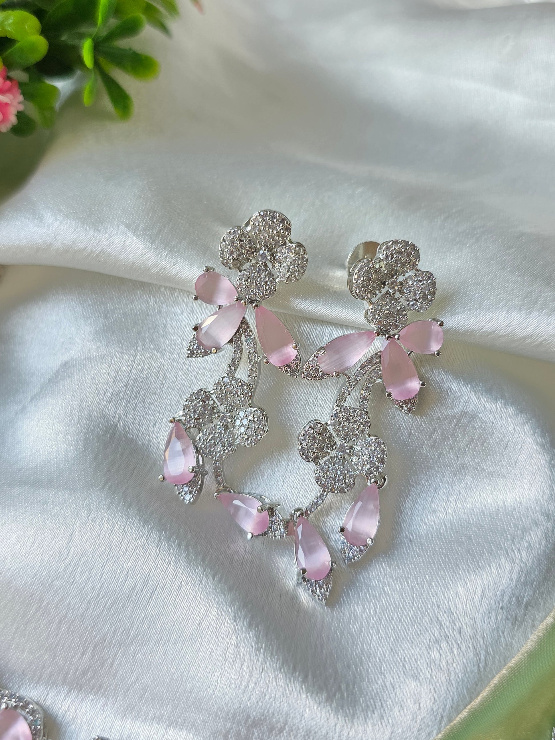Material: High-quality AD stones with light pink crystals