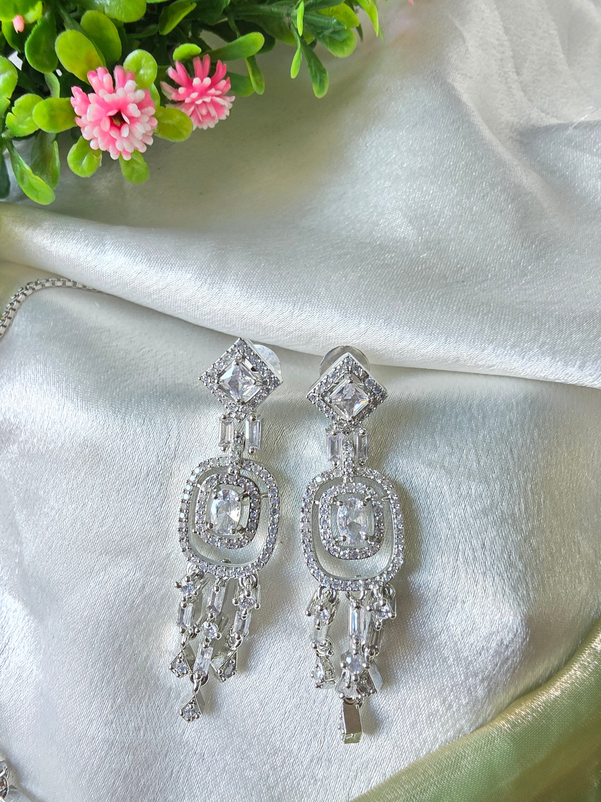 The Elenza White AD Necklace Set embodies grace and sophistication with its refreshing pastel tones and intricate detailing. Designed with white stones surrounded by shimmering American Diamonds, this set radiates a serene charm that perfectly complements both traditional and modern ensembles. Its elegant craftsmanship and unique dangling design add a touch of luxury to any occasion — from festive celebrations to evening gatherings.
